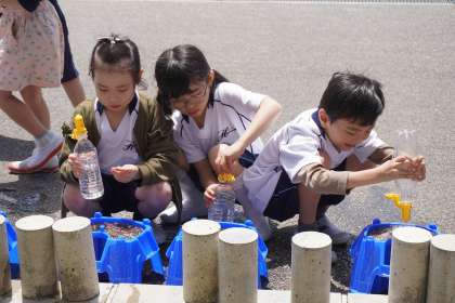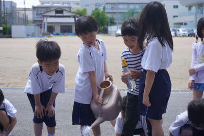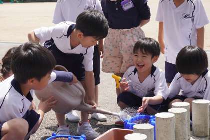 毎朝、あさがおに、たっぷりのお水をあげている1年生です。