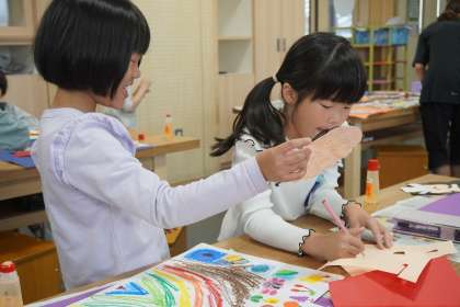 すきなものバッグをもつわたし〜その2〜(1年生) 公開日 2024/05/22 更新日 2024/05/22 1年生 「みてみて、かわいいでしょう」 「服にももようをつけるよ」 「ぼくは体操服にした」 にこにこ笑顔で、作品を見せ合っていました。