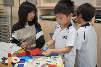 お互いに見合って、いいところを自分の作品にも進んで取り入れようとしている1年生の姿がすてきでした。