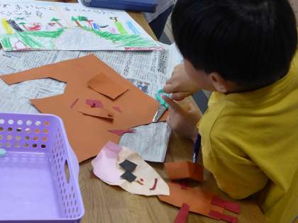 先週は 色画用紙を手でちぎって 自分の顔を 作りました