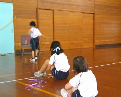 なかよし集会(なかよし級) 公開日 2024/06/06 更新日 2024/06/06 特別支援 今日は、上体起こしと短縄跳びリレーを行いました。 上体起こしでは、コツが分かって前回よりも 回数がぐんと伸びました。 短縄跳びリレーでは、1分交代で一人ずつ跳び、 学級の仲間の合計回数を数えました。 「跳べない」と言っていた1年生も、4年生がリズムよく跳ぶ姿を 注意深く観察し、自分の順番になると一生懸命に取り組んでいました。