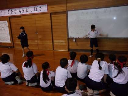 「わたしたちのお祭り」への道 その6(4年生) 公開日 2024/06/14 更新日 2024/06/14 4年生 体育科の「表現運動〜祭り〜」では、自分が考えたお祭りのイメージを体を使って表現する活動に取り組み始めました。地域で獅子舞の演舞をした子どもたちの表現を見た子どもたちは、自分たちもお祭りを表現をしたいと意欲を高めました。まずは、様々なお祭りの動画を見て、踊りやダンスの動きを真似するところから始めています。