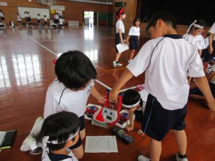 体力テストのサポート2回目です。今日は、1組と3組の子どもたちがお手伝いをしました。最初は、少し恥ずかしそうにしていた子どもたちですが、最後には笑顔で握手をするくらい仲良くなれたようです。