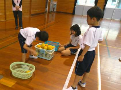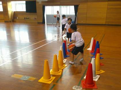 なかよし集会(なかよし級) 公開日 2024/06/19 更新日 2024/06/19 特別支援 今日は、前回行ったハンドテニスを、 少しだけレベルアップしたルールに変えて取り組みました。 ハンドテニスの後の自由タイムでは、 1年生がコーンでつくったコースで ドリブルをしたりボールを転がしたりして 楽しんでいました。