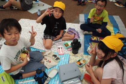 昼食の様子です。ファミリーごとに食べています。「美味しい!ありがとう!」とおうちの方に感謝していました。