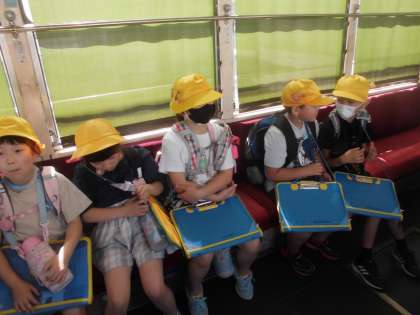 市内電車の中では、乗っているお客さんのことを考えて、「今は座らないで立っておこうよ」と声をかける女の子がいました。歩道を歩いていると、「自転車が近付いてくるよ」と声をかけ自分たちの歩き方を考えようと呼びかける男の子がいました。