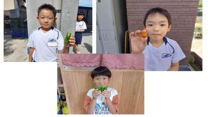 やさいがとれたよ(2年生) 公開日 2024/06/25 更新日 2024/06/25 2年生 子どもたちが大切に育てている野菜の収穫が始まっています。 嬉しいことの反面、困ったことも起きているようです。 「トマトがだれかに食べられてる!」 「茎が大きく伸びて、ポッキリ折れちゃった…」 いろいろな悩みがあるようです。ぜひおうちでも、どんなことで困っているかを聞いてあげてください。
