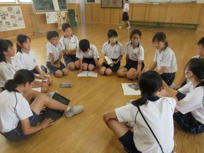 各委員会の委員長が集まり、現状と今後の見通しについて話し合いました。委員長ならではの悩みに共感したり、他の委員会の活動に刺激を受けたりしながら、さらにやる気を高める子どもたちの姿が見られました。
