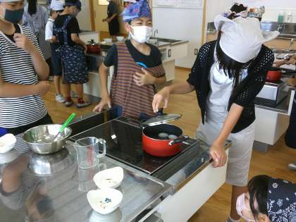 3〜15分間、卵をゆでました。「『3分間ゆでる』と3分間火をかけるのを勘違いしていた」と、ほぼ生卵の状態になってしまうこともありました。「くやしい。家でリベンジしてくる」と力強く語っていました。今日の学びが、これからのくらしに生きていきそうですね。