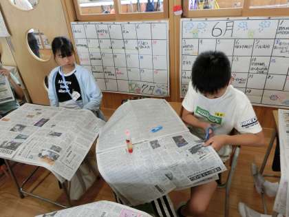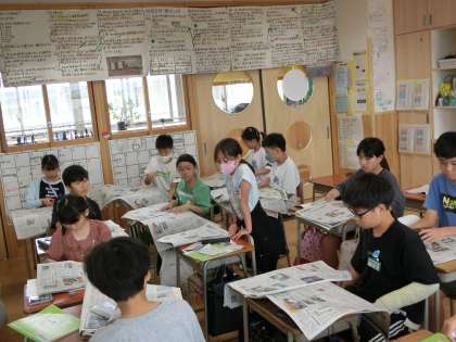 4組では、北日本新聞社による新聞記事のスナップ作りが始まりました。4日間、毎日新聞を読み、自分のが心に残った記事をスナップし、感想を書いていきます。その後、クラスで話し合い5つの記事を選んでいきます。