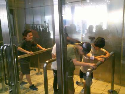 「四季防災館」では、「この前も地震があったよね」と話していましたが、いざ地震体験をすると「あのときもこんなに揺れていたのか。時間が経つと怖さを忘れてしまう」と経験と照らし合わせました。また、職員の方の言われる「もし自分の身に起こったとしたら」を受けて、「こんなに揺れて、家も崩れて、津波に備えて避難しようなんて考えられるだろうか。防災リュックは持ち出せるのだろうか」と自分の身に置き換えて考える子どもがいました。