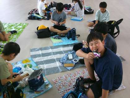 しっかり学んだ後は、とてもおなかが空きます。学年全員が同じ空間で昼食の時間を過ごしました。作ってくださった感謝を込めて、満面の笑みでお弁当を食べました。