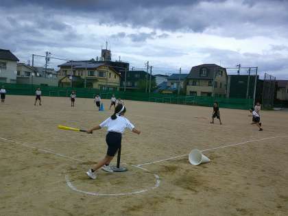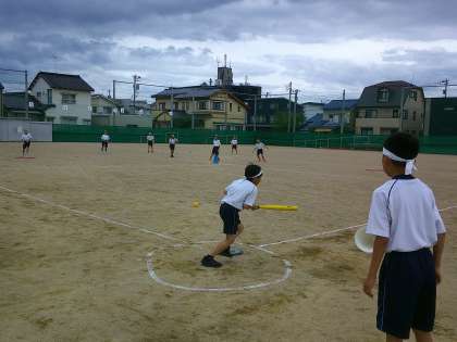 相手の打撃から守備位置を変更したり、守備位置を見て打撃方法を工夫したりしました。明るく元気なかけ声は曇り空に反響して聞こえました。