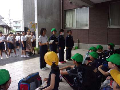 4年生は初めての宿泊学習をむかえました。ここまで、ファミリー毎に目当てを立て、活動の準備に取り組んできました。その成果を発揮しようと子どもたちは輝いた目で出発式に臨みました。仲間との絆を強くしたい、ファミリーで協力したいなどの発表からも子どもたちの宿泊にかける思いの強さを感じられました。