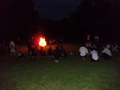 夜はキャンプファイヤーを行いました。大きな火を囲み、学年全員でレクリエーション等の交流活動に取り組んだり、火を眺めながら、身の回りの人、仲間等に感謝の気持ちをもったりする時間になりました。特別な体験に子どもたちも引き込まれ、いつまでも炎を見つめていました。