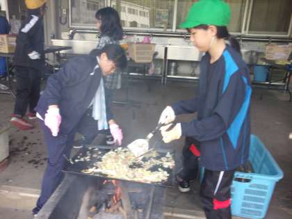 二日目の活動は野外炊飯でした。安全に気を付け、仲間と協力しながらおいしい焼きそばを作ることを目標に、ここでもファミリーで力を合わせて取り組みました。初めての包丁や火起こしに苦戦しながらも、自分たちで調べてきたことやその場で相談して決めたことを生かしながら、最後まで粘り強く調理することができました。仲間と作り上げたやきそばの味は格別だったようです。