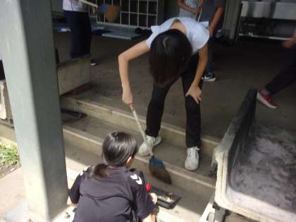 調理だけでなく、片付けもがんばり抜く子どもの姿がたくさん見られました。ファミリーの中で協力するだけでなく、ファミリー同士でも協力することで、炊飯場所を学年・学級全体できれいに整えることができました。