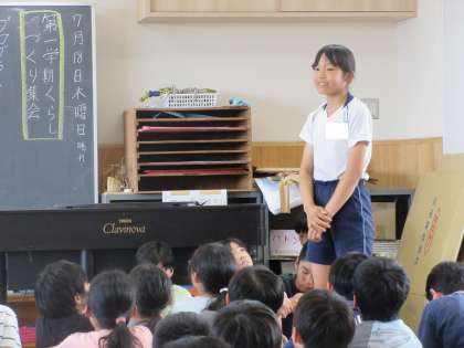 1学期に頑張って取り組んできたことについて、7名の子どもたちが発表しました。どの子の発表からも、仲間と切磋琢磨しながら、充実した1学期を過ごしてきたことが伝わってきました。