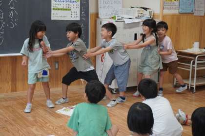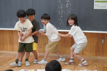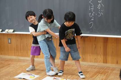 うんとこしょ どっこいしょ!〜その2〜(1年生) 公開日 2024/07/25 更新日 2024/07/25 1年生 「おおきなかぶ」を音読をするだけでなく、身振りを付けて劇のように発表する子どももいるなど、仲間と話し合い、一生懸命に考えています。 「うんとこしょ どっこいしょ」は、自分の番でなくてもみんなで言うなど、仲間と共に楽しみながら学習を進めていました。