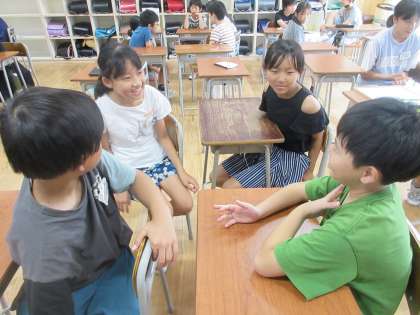朝活動の後は、ファミリーごとに立山登山を通して感じたことを聞き合ったり、クイズチームが企画した「超難問クイズ」で盛り上がったりと、久しぶりの学校を楽しむ子どもたちでした。