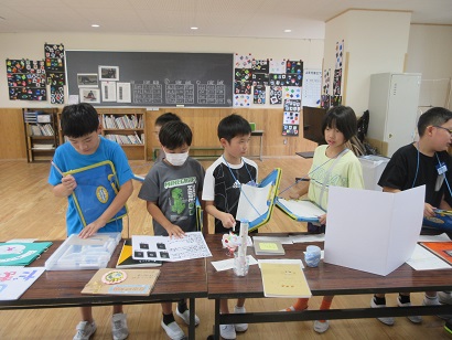 夏休みに一人ひとりが工夫を凝らして取り組んできた自由研究の作品展が始まりました。仲間の作品や取組を見ながら、来年度取り組んでみたいことについて考えているようでした。
