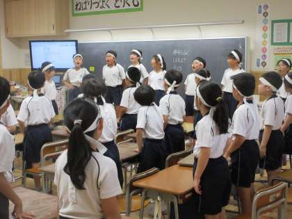 夏休みの間から結団式に向けて準備を進めてきた6年生。くらしの時間では、Aさんが「団を結ぶ、白団初めての式。みんなの心を一つにしたい」と話しました。Bさんは、「自分の役割だけではなく、周りの人の役割も覚えてサポートできるようにしたい」と続きました。一人ひとりが自分だけでなく仲間や下学年のことを考えている6年生です。