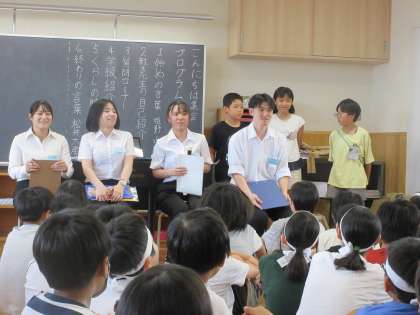 教育実習生の先生方、ようこそ!(6年生) 公開日 2024/08/30 更新日 2024/08/30 6年生 教育実習の先生方をお迎えする「こんにちは集会」を行いました。各学級の紹介コーナーや、先生方への質問コーナーなどを通して、子どもたちはこれからの教育実習の先生方とのくらしに期待をふくらませていました。