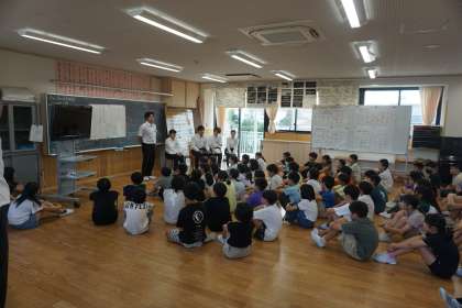 教生先生と出会う「こんにちは集会」では、子どもたちが係を決め、プログラムや司会、はじめの言葉とおわりの言葉、クラス紹介まで行いました。どのクラスも個性の生きた紹介となりました。