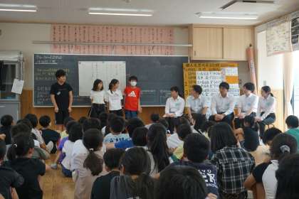 教生先生方は、それぞれの特技を生かしたあいさつをされ、子どもたちも盛り上がっていました。