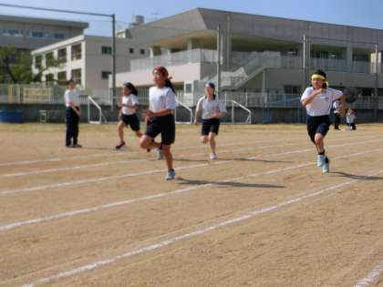 9月記録会(5年生) 公開日 2024/09/08 更新日 2024/09/08 5年生 9月も100メートル走記録会をしました。運動会のリレー選手が決まるため、夏休みも一生懸命陸上の練習に励みこの日を迎えた子どもたちもいます。一人ひとりが最後まで一生懸命走りきりました。子どもたちは毎朝、自分の記録をどんどん伸ばそうと練習をしています。来月の記録会、運動会での徒競走やリレーも楽しみです。