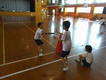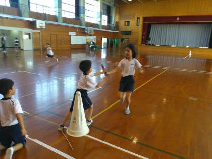 なかよし集会(なかよし級) 公開日 2024/09/17 更新日 2024/09/17 特別支援 「腕を後ろに振る」「足を上げる」といった 速く走るためのポイントをみんなで確認し、 紅白リレー、全員リレーをしました。 力いっぱい走ってバトンをつないでいました。