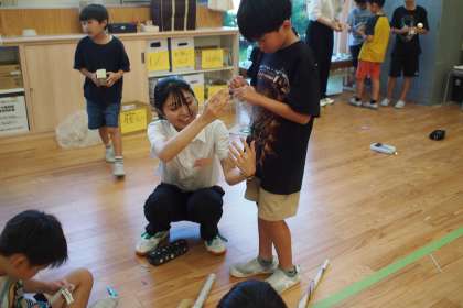 教生先生との学習をしています。楽しそうに思い思いの活動をしています。