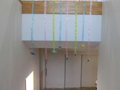 図画工作科で普段のくらしの中に笑顔がうまれるようなしかけを制作しました。他学年も「ここにもあった」と笑顔で会話してくれています。