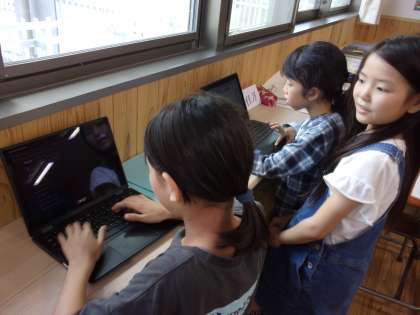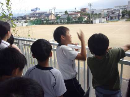 理科の学習で、月は昼に出ているのか、という疑問が浮かんできた子どもたちは、早速空に浮かぶ月を探し始めました。校舎の外やベランダに出て空を見上げる子どもや、パソコンを広げて現在地を特定しようとする子どもなど、様々な方法で月を見付けようとがんばる姿が見られました。この日は月を見付けることができなかった子どもたちでしたが、諦めることなく観察を続け、次々と目撃情報を報告し合っていました。中秋の名月も楽しもうとする子どもたちです。