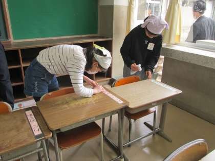 入学式準備は、5年生にとっての初仕事です。新入生やその家族の立場になって、よい入学式になるよう心をはたらかせる子どもたちでした。準備後は「疲れた」と言いながら、誰かのために働く気持ちよさを感じているようでした。