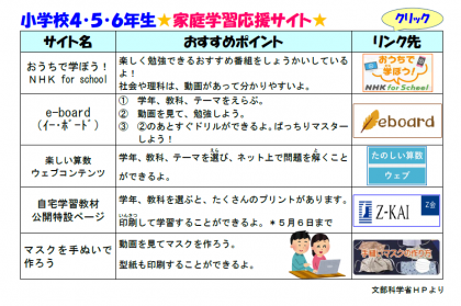 休業期間中、自宅での学習の参考となるおすすめ学習サイトを紹介します。