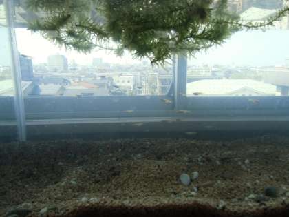 5年生のまちに、メダカの水槽を設置しました。本来は、理科「魚のたんじょう」の学習でみんなで飼育していく予定でしたが、休業中のため先生たちでお世話をしていきます。