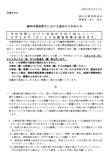 分散登校について(富山市教育委員会より)
