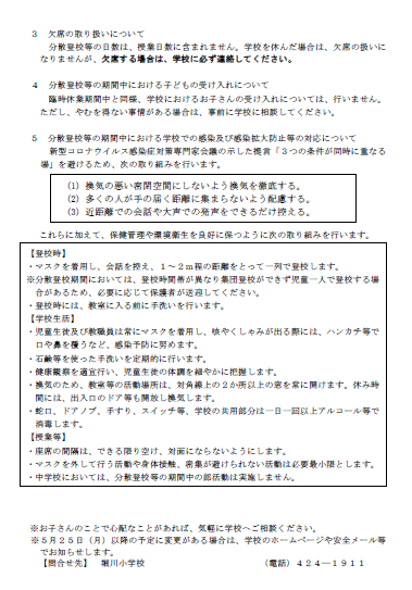 5月25日(月)から分散登校等を始めます。