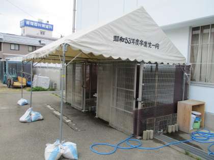 飼育小屋、丸池、中庭の池が無くなりました。ガチョウのガガとピピ、アイガモのジュピトルは体育館東側の小屋に移動しました。