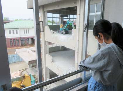 つい2、3か月前まで、体育のマット運動の技を練習したり、学年で合奏練習や話し合いをしたりしていたことを思い出して、寂しい気持ちになった人。真剣な表情で働く工事関係者の様子を見て、感謝する気持ちをもった人。改築に向けて動き出したことを実感して、数年後の完成が楽しみになった人。それぞれの感じ方がありました。