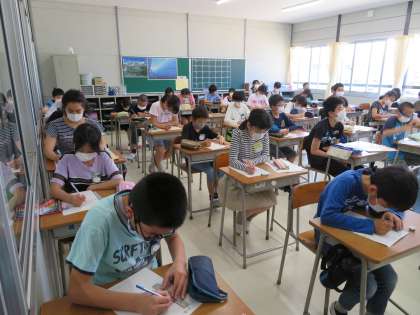 来週からの学校再開に向けて、6年生のみの登校日でした。久しぶりに学年のみんなが集まり、6年生のまちの活気が一気に上がりました。
