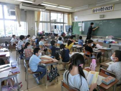 3年生は各学級で今日もがんばって学習しています。算数や道徳、図工等、学校が再開し、みんなで学習できる楽しさを感じながら取り組んでいます。