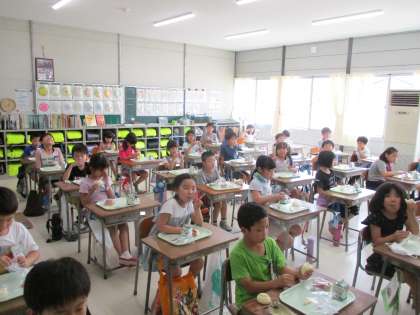 今日は2年1組の様子です。蒸しパンを美味しそうにほおばっている何人もの姿が印象的でした。
