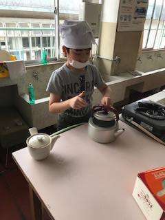 今回は「お茶でおもてなし」と題し、ペアの仲間にお茶を出す活動でした。コンロの使い方などの安全指導を丁寧に行い、活動を始めました。
