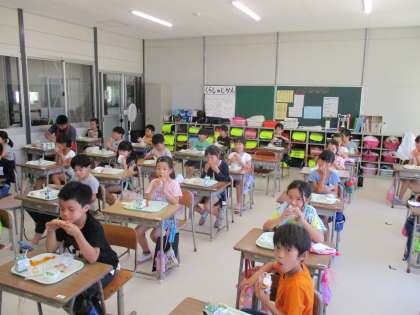 今回は、2年2組の様子です。給食の準備をするのが、とても上手になりました。