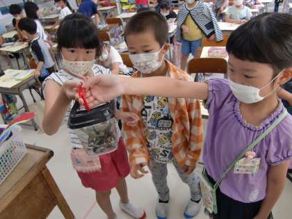 学年ブーム(2年生) 公開日 2020/06/19 更新日 2020/06/19 2年生 6月も中頃に入り、梅雨の季節も真っ最中の今日この頃です。2年生では、ちょっとした「虫さんブーム」が広まっています。男の子はもちろん、女の子にも広まり飼育ケースに虫を入れて、優しく触れてみたり、虫を見つめたりする姿が見られます。子供の頃は苦手だった、一担任の思いですが。虫好きの女の子・そして男の子達、かっこいいですね。そして子供らしくてかわいいですね。また、来週も素敵なくらしをつくりましょう。