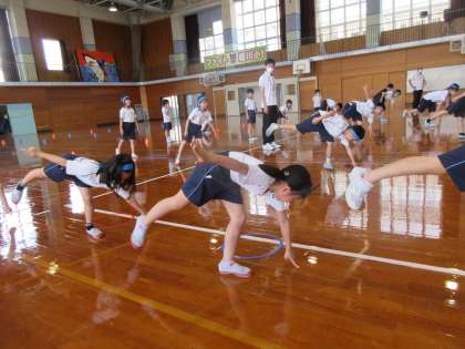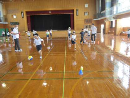 富山市体育協会から講師の先生をお招きして、体つくり運動の教室を行いました。バランス運動やボール運動などを通して、体を動かす楽しさを感じ、笑顔いっぱいの一時間になりました。