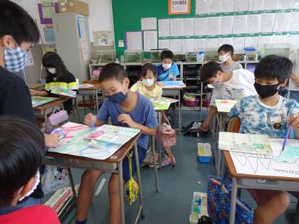 まだ見ぬ世界を描く(5年生) 公開日 2020/06/24 更新日 2020/06/24 5年生 図画工作科「まだ見ぬ世界」で、1枚の写真から見たことのない世界を描いています。子ども達は学校の写真や、世界遺産の写真、風景の写真などから膨らむ想像の世界を楽しみながらそこから広がる情景を描いています。