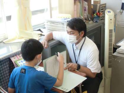 外国語の学習(6年生) 公開日 2020/06/25 更新日 2020/06/25 6年生 今日の外国語の学習は一つのユニットのまとめとして、レイシェル先生から質問を受けながら自己紹介をしました。先生に自分の文章を確かめながら、習ったことを精一杯発揮して英語で話していました。